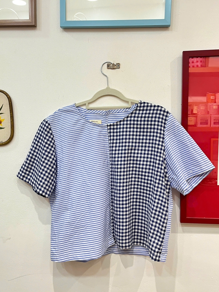 Áo cộc tay kẻ caro xanh blue nhạt Líu Lô 450
