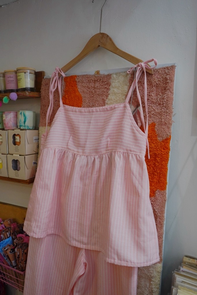 Áo hai dây babydoll kẻ trắng hồng cotton