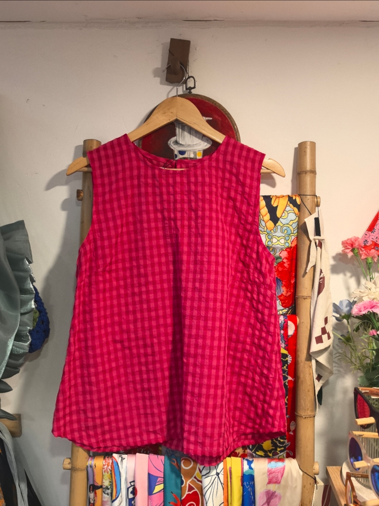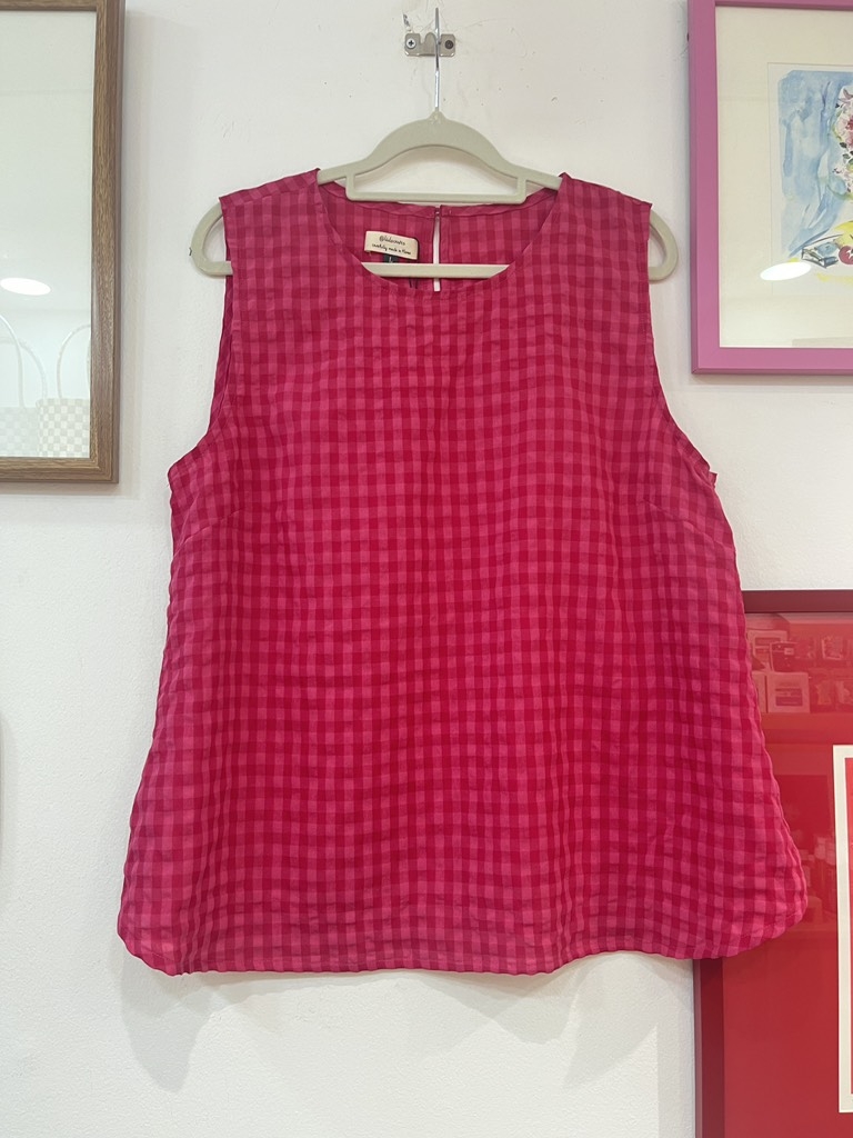 Áo không tay kẻ caro hồng đậm Líu Lô 550