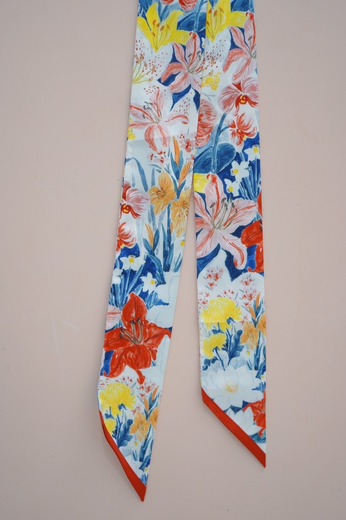 Khăn lụa twilly muôn hoa 8x90 Mai Lê