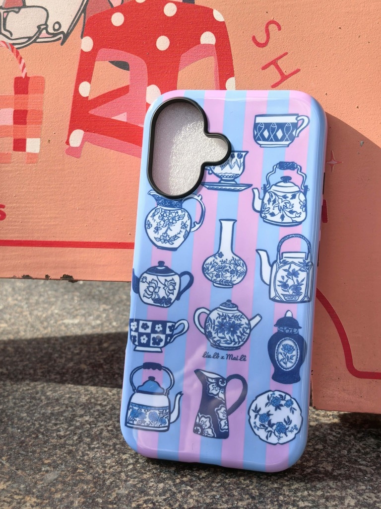 Ốp 17 promax Gốm bát tràng nền hồng Mai Lê x Líu Lô