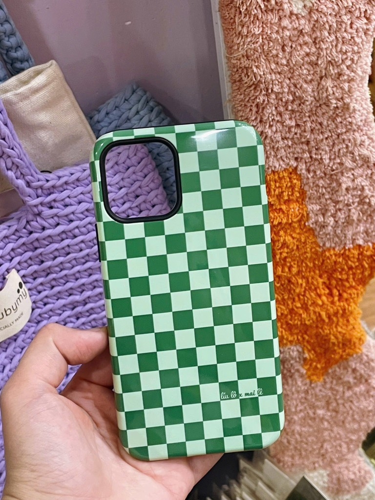 Ốp 17 promax Kẻ caro xanh lá cây Mai Lê x Líu Lô