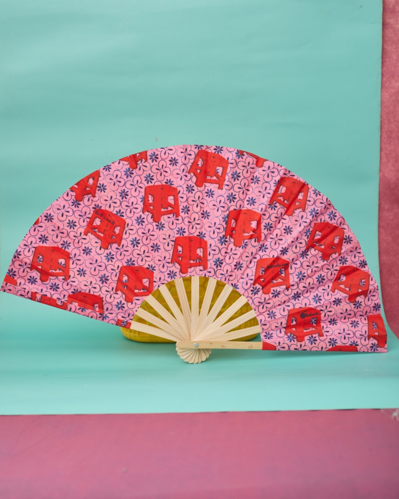 Quạt Ghế đỏ nền hồng Mai Lê x Líu Lô