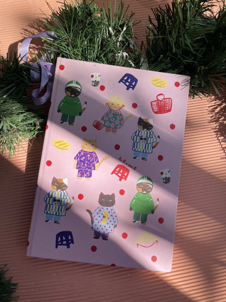 Sổ A5 Dot Mai Lê x Líu Lô mèo nền hồng 100gsm / 120 page