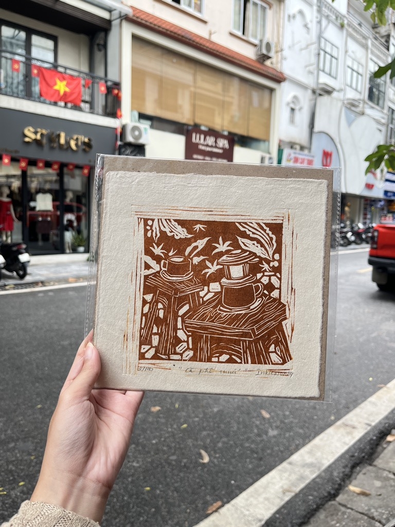 Tranh in tay Vốn cổ Huế Mộc Trà Cà phê muối 15 x 15