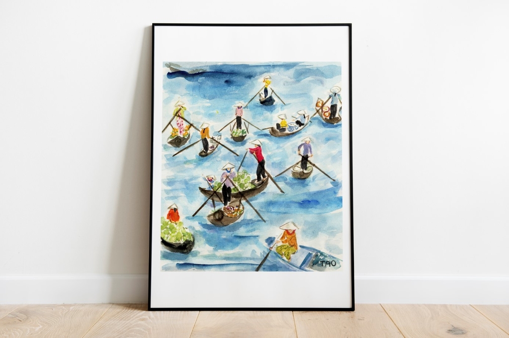 Tranh Tao A3 Boat women in Mekong, Vietnam