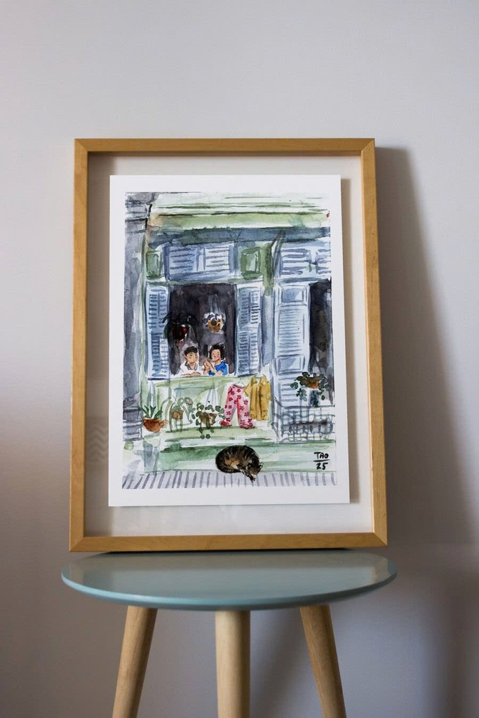 Tranh Tao A4 Still life with cat ( yellow wall )